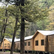 The lake is of glacial origin and is surrounded by the andes mountain range.