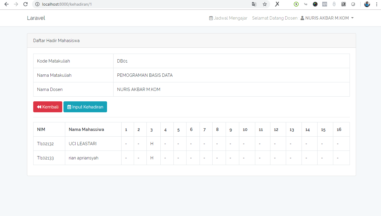Absensi online berbasis web menggunakan algoritma vigenere cipher dan metode.